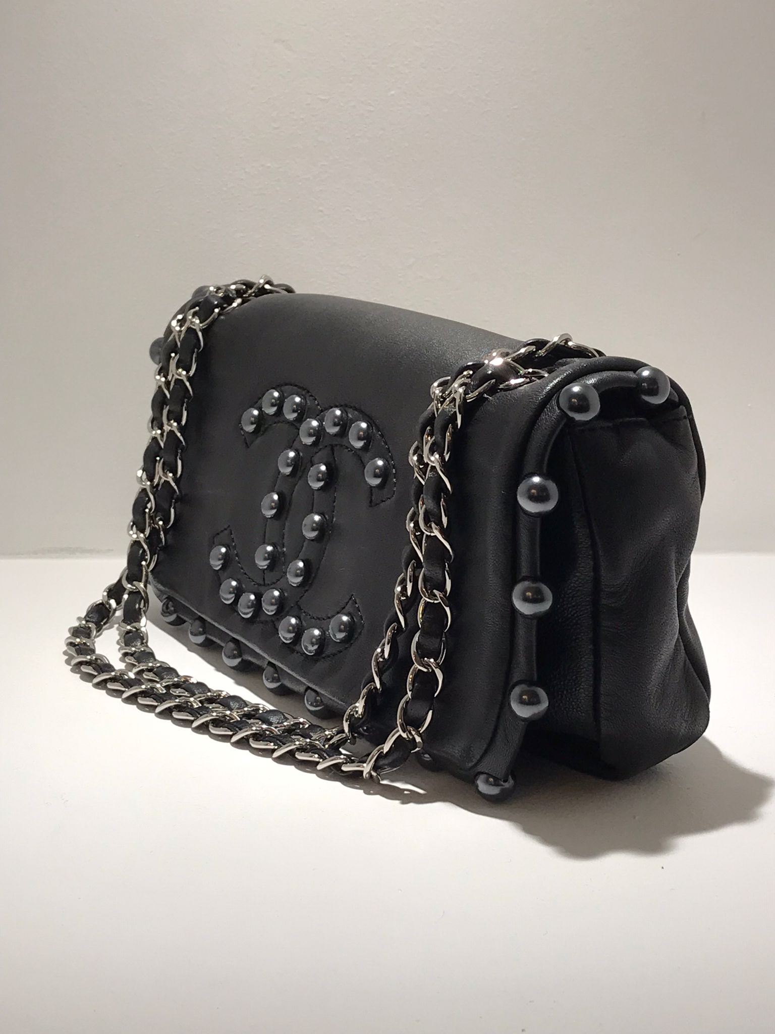 Matière cuir d’agneau agrémenté de perles noires