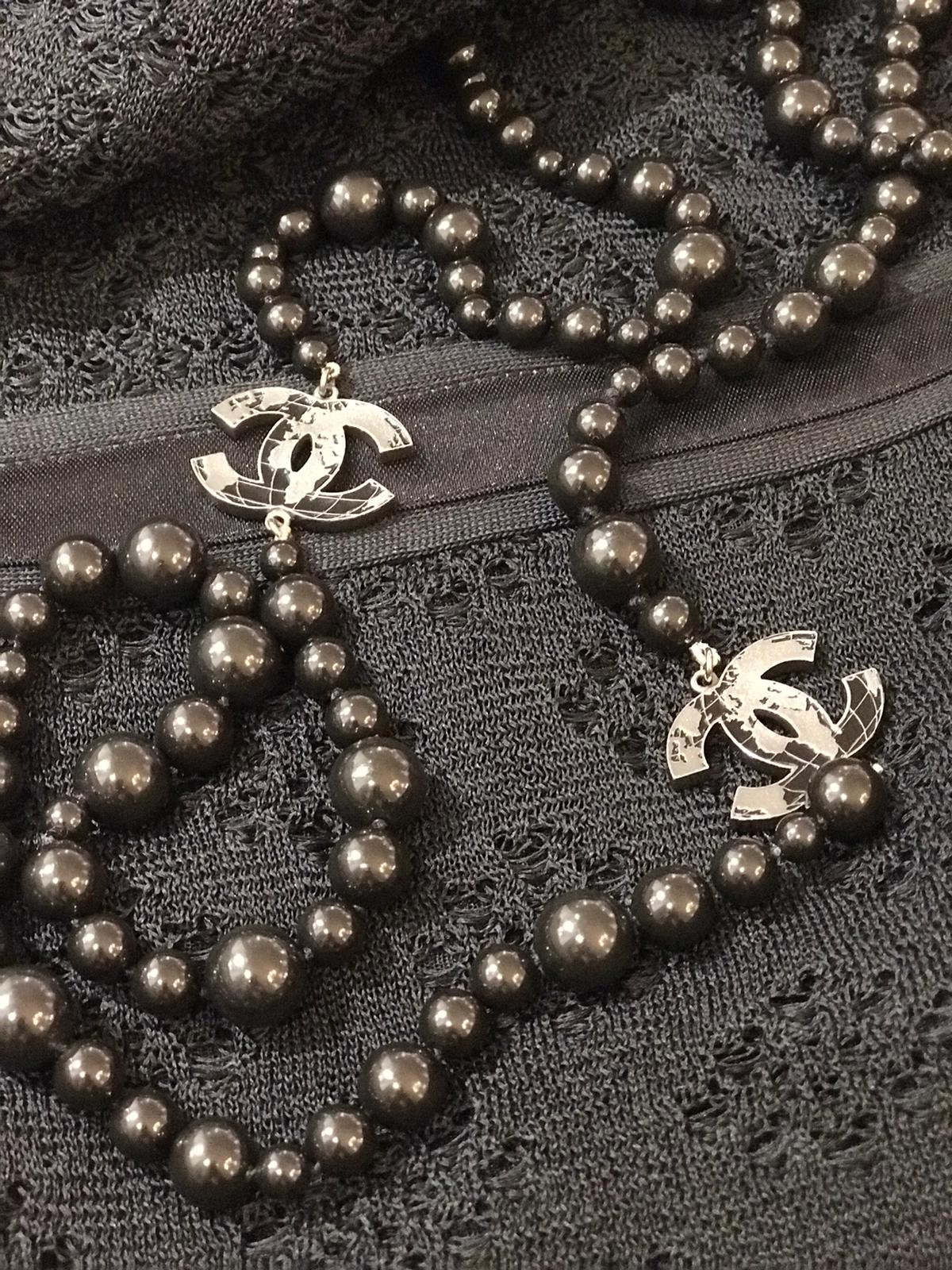 Sigles de la maison en métal noir et argent figurant les continents et les océans